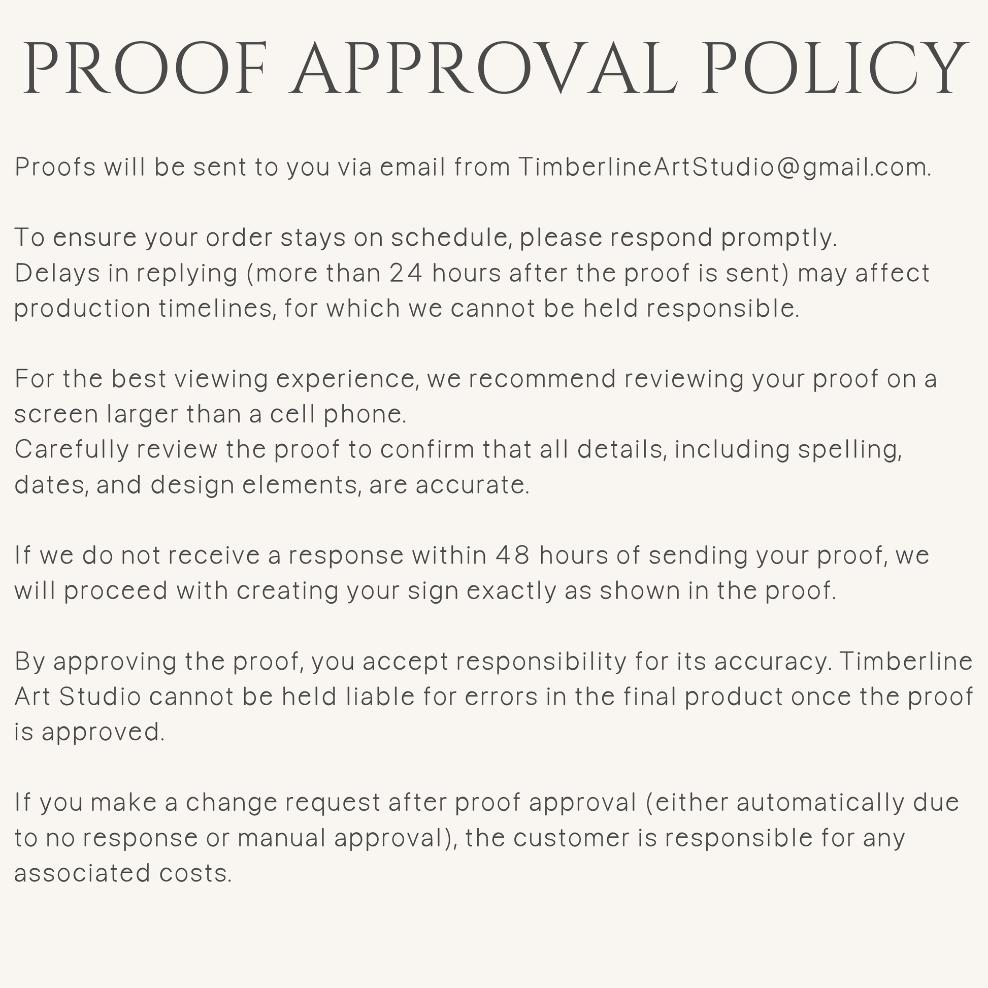 - If we do not receive a response within 48 hours of sending your proof, we will proceed with creating your sign exactly as shown in the proof.
